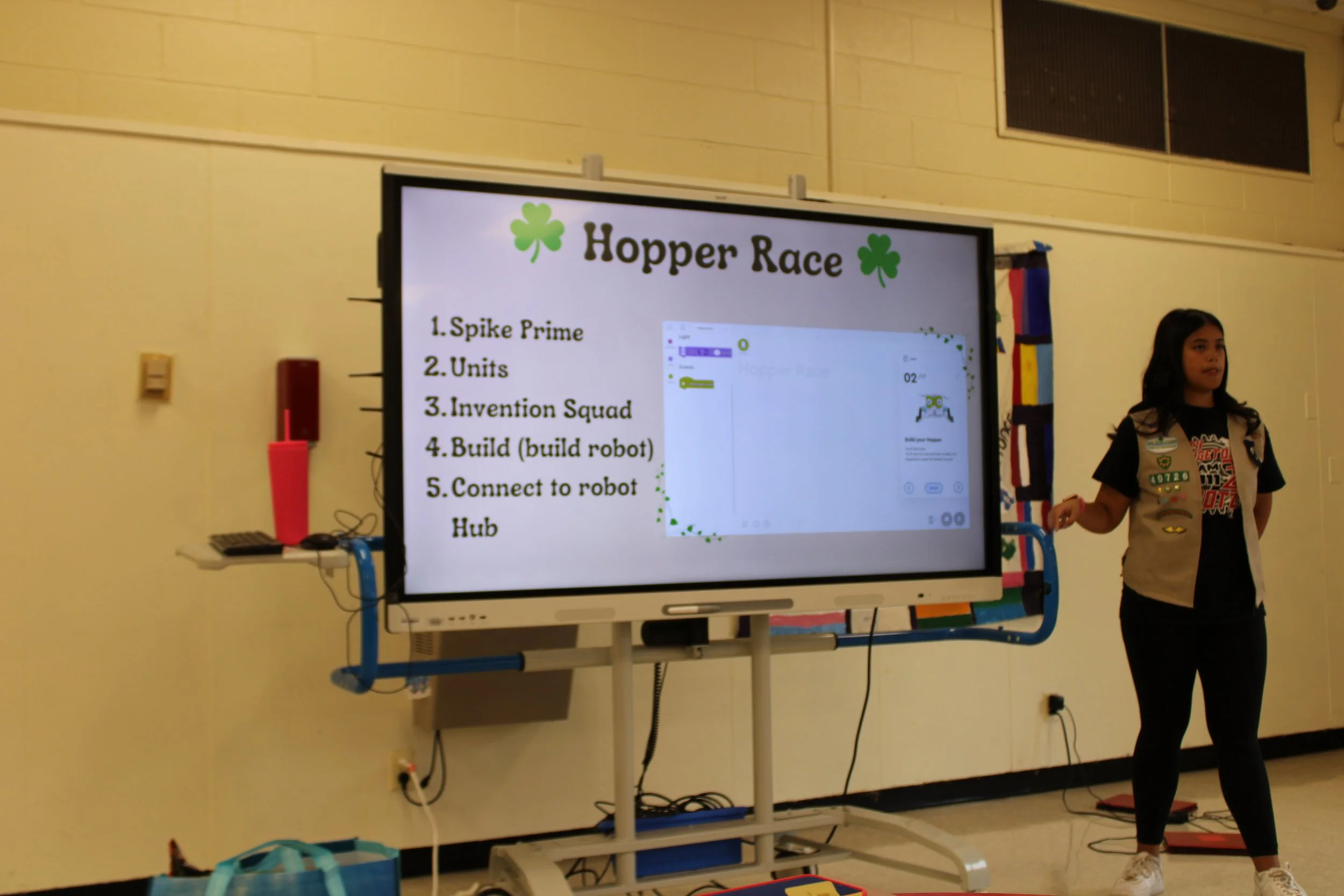 During October 2023, I planned and hosted a Girl Scouts STEM Day for local Brownie and Junior Girl Scout troops. I used Spike Prime Lego robots to teach the girls about engineering and programming. The girls also learned about testing, creating prototypes, and collaboration. Through participating in this event each Girl Scout received their Robotics programming patch.